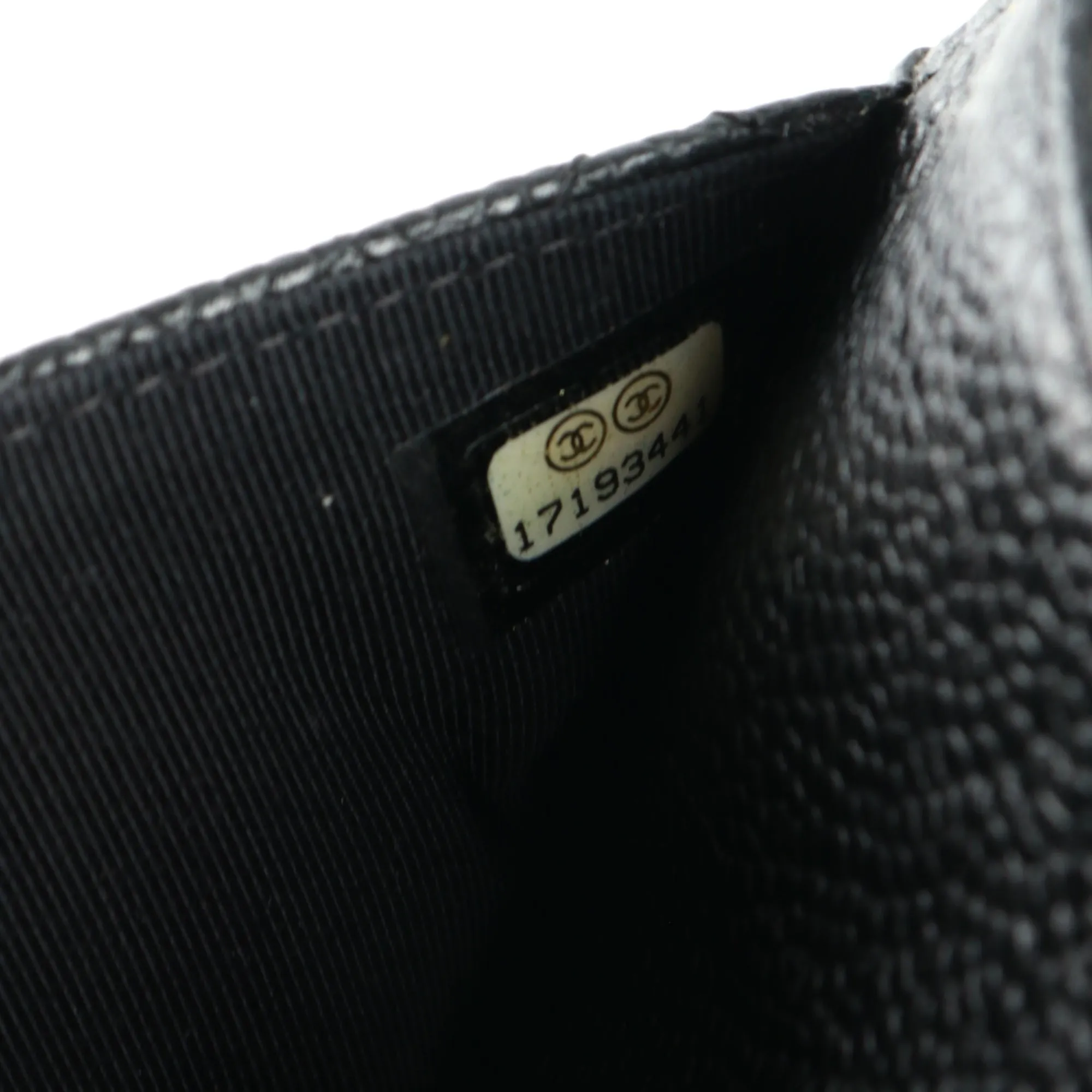 Model: Wallet On Chain Timeless Material: Caviar grained leather Black color CC logo on the front Dimensions 19cm x 12cm x 3cm Opening by pressure Internal zipped pocket Hologram